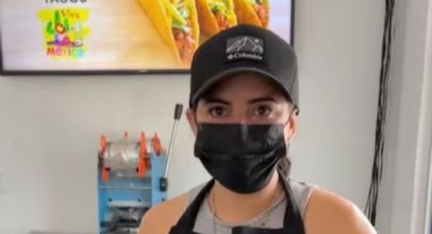 En un video que circula en las redes sociales, se observa a la trabajadora de la taquería “Mejico Lindo” diciendo “what?” cuando el influencer pide que le vendan 10 tacos.