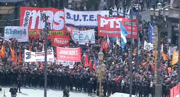 Mientras tanto, afuera del recinto se incrementó la represión a la manifestación contra el veto, los enfrentamientos estallaron cuando la Policía, respaldada por Gendarmería y Prefectura, intentó dispersar a los manifestantes que intentaban ocupar la Avenida Rivadavia para marchar hacia la Casa Rosada.