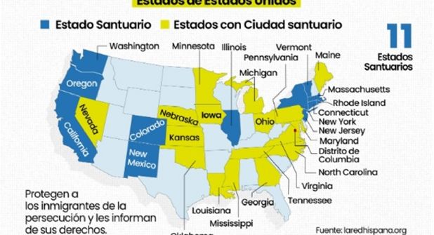 En total, hay 163 ciudades santuarios distribuidas entre 30 estados de los Estados Unidos, en las cuales, los migrantes pueden vivir sin temor a ser detenidos y deportados mientras caminan por la calle.