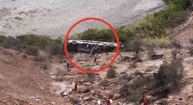En este sentido, el autobús cayó a unos 200 metros en el distrito de Ocaña al chocar de frente con una camioneta blanca. Asismmo, el accidente provocó la movilización de los distintos servicios de emergencia, por lo cual policías y bomberos realizaron los despliegues de las labores de rescate en el lugar del siniestro. De este modo,las personas que resultaron con lesiones fueron trasladadas a un hospital.