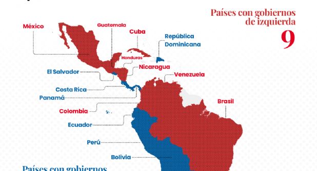 - Colombia: el gobierno está liderado desde 2022 por Gustavo Petro y su coalición principal, el Pacto Histórico, fusión de movimientos de izquierda. Petro sucedió a Iván Duque, del partido de derechas Centro Democrático.