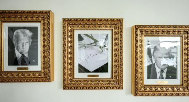 Las placas fueron descubiertas por periodistas y se encuentran colgadas debajo de los retratos presidenciales que han estado en exhibición desde septiembre, cuando se inauguró el “Paseo de la Fama Presidencial” frente a la Oficina Oval.
