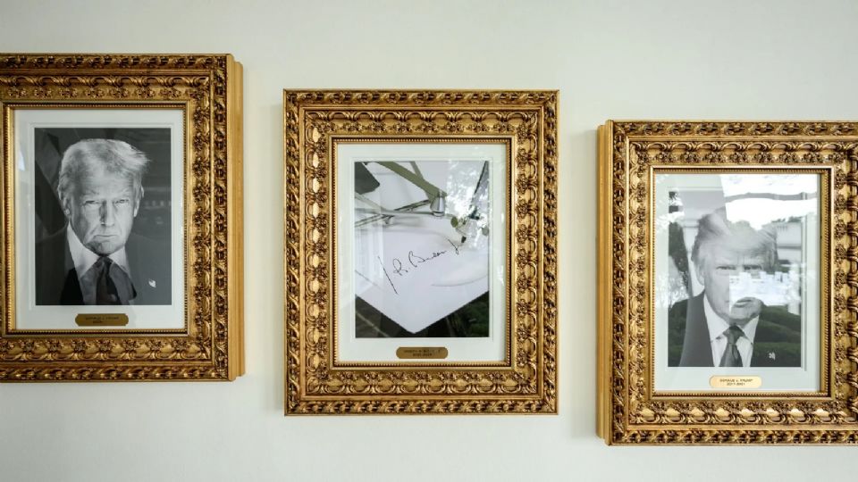 Las placas fueron descubiertas por periodistas y se encuentran colgadas debajo de los retratos presidenciales que han estado en exhibición desde septiembre, cuando se inauguró el “Paseo de la Fama Presidencial” frente a la Oficina Oval.Créditos: White House