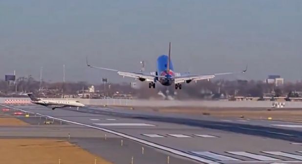 La plataforma digital, StreamTime Live, publicó imágenes del aterrizaje frustrado del avión comercial de Southwest Airlines, justo en el momento preciso para evitar colisionar con un jet privado que se atravesó en la pista.
