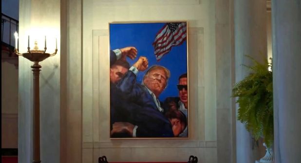 "Una nueva obra de arte en la Casa Blanca", escribió la institución en su cuenta de X, al presentar el nuevo retrato del presidente de Estados Unidos, Donald Trump, el cual, emula el momento en el que sobrevivió a un intento de asesinato durante su campaña electoral el año pasado. El cuadro fue presentado con un video de 3 segundos en la cuenta oficial de la dependencia.