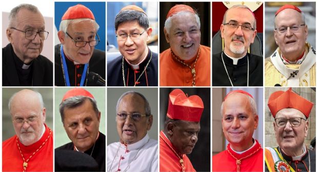 En la imagen, de izquierda a derecha y de arriba a abajo: Pietro Parolin, Matteo Maria Zuppi, Luis Antonio Tagle, Jean-Marc Aveline, Pierbattista Pizzaballa, Péter Erdö, Anders Arborelius, Mario Grech, Malcom Ranjith, Fridolin Ambongo Besungu, Robert Francis Prevost y Timothy Dolan.Créditos: EFE