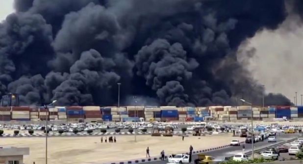 Las televisiones locales mostraron imágenes de una enorme nube negra sobre el puerto, así como escenas de pánico en la zona.