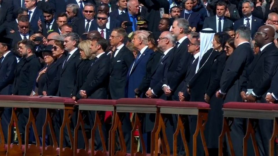 El presidente de Estados Unidos, Donald Trump; el de Francia, Emmanuel Macron, y el de Ucrania, Volódimir Zelenski, se sentaron este sábado en primera línea en el funeral del papa Francisco en la plaza de San Pedro.