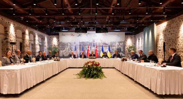 El ministro de Defensa ucraniano explicó que la exigencia rusa de que Ucrania renuncie a todo el territorio de las cuatro regiones parcialmente ocupadas que Moscú declaró como parte de la Federación de Rusia en el primer año de la guerra no se ha abordado en el encuentro de Estambul.