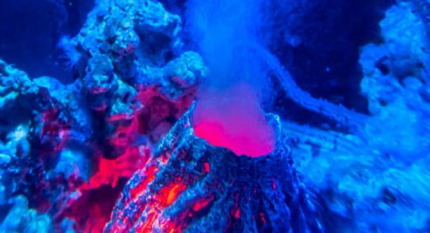 La lava que sale más lentamente puede acumularse y generar calor que tarda en disiparse, permitiendo el crecimiento de esteras microbianas que "casi parecen nieve". Las erupciones también crean plumas de fluido cálido y rico en minerales llamadas fuentes hidrotermales, donde el agua de mar calentada por el magma sale a borbotones.