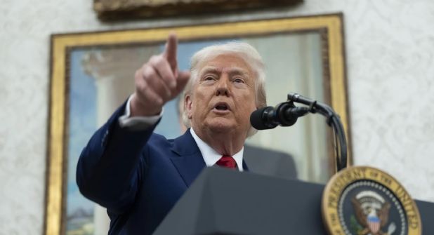 "Yo impuse a la Unión Europea un arancel del 50 %, ellos llamaron y dijeron: Por favor, reunámonos ahora mismo. Y yo les dije: De acuerdo, les doy plazo hasta el 9 de julio'", afirmó el republicano.