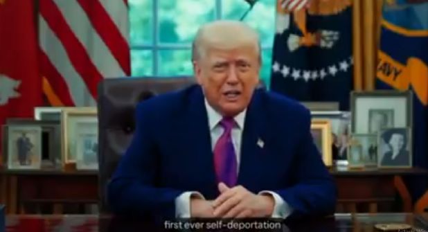 "Hoy, firmé una orden ejecutiva para lanzar el primer programa de autodeportación para extranjeros indocumentados. Estamos haciendo que sea lo más fácil posible para que los extranjeros ilegales abandonen Estados Unidos. Cualquier extranjero puede simplemente presentarse en un aeropuerto y recibir un vuelo gratuito fuera de nuestro país. También hemos lanzado una aplicación telefónica llamada CBP Home”, dijo en un video que se posteó en sus redes sociales