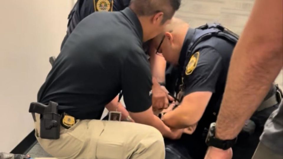 Un video mostró cómo el senador, nacido en California de padres migrantes mexicanos, fue arrojado al suelo en el pasillo fuera de la conferencia y esposado.