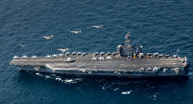 El portaaviones USS Carl Vinson está en el mar Arábigo con los cuatro buques de guerra de su grupo de ataque.