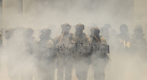 Además, también captó a tropas reuniéndose a lo largo de la calle Alameda, en el centro de Los Ángeles, y conduciendo a través de la localidad de Paramount, de mayoría latina y donde hubo enfrentamientos más intensos horas atrás.