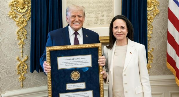 La líder de la oposición venezolana María Corina Machado aseguró este jueves que durante la reunión en la Casa Blanca con el presidente de Estados Unidos, Donald Trump, le "presentó" la medalla del Premio Nobel de la Paz que ganó el año pasado.