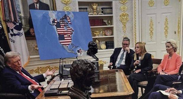 Trump ha considerado en varias ocasiones Canadá como un estado más de Estados Unidos y ha capturado al líder Venezolano, Nicolás Maduro, acusándolo de ser un narcoterrorista y pretende juzgarlo en Nueva York tras imponer un gobierno títere en el país sudamericano liderado por la exvicepresidenta chavista del país, Delcy Rodríguez.