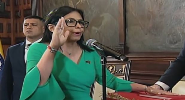 La funcionaria ha jurado con la mano izquierda sobre la Constitución de la República venezolana y la mano derecha levantada y ante el presidente de la Asamblea Nacional, su hermano Jorge Rodríguez.