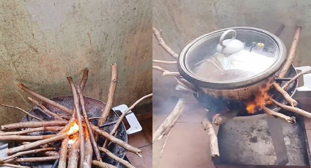 Darlin Medina cocina con leña ante la falta de energía eléctrica. En un video posteado en sus redes sociales, describe la realidad del pueblo cubano y cuestiona que se tenga que llevar una hornilla de carbón a los hospitales para poder calentar agua o leche a los familiares enfermos.