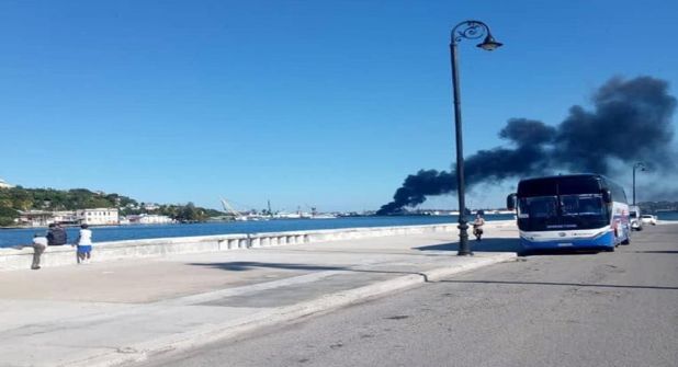 Las autoridades cubanas no han informado por el momento de las causas y alcance del siniestro, que se originó a media tarde y era claramente visible desde toda la costa de la bahía de la capital cubana.