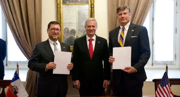 El convenio fue firmado en La Moneda, por el presidente de Chile José Antonio Kast, el ministro de Relaciones Exteriores, Francisco Pérez Mackena y el Vicesecretario de Estado estadounidense, Christoper Landau.