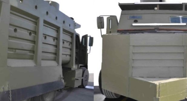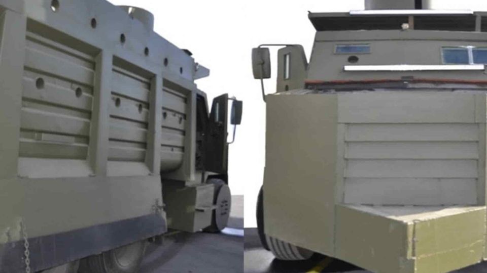 Estos “narcotanques” son vehículos pesados como camiones de volteo, tractocamiones o de valores forrados con placas de metal de una pulgada de grosor, que resisten hasta el calibre 50.