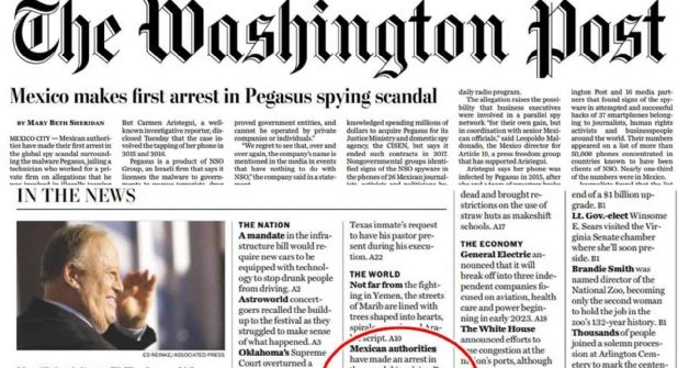 Juan Carlos “N”, miembro de la empresa Proyectos y Diseños VME fue vinculado a proceso por su probable responsabilidad en la comisión del delito de intervención ilegal de comunicaciones agravado en perjuicio de una periodista utilizando el software “Pegasus” con la finalidad de afectar, limitar y menoscabar su libertad de expresión. Este tema fue destacado en la portada del diario estadounidense The Washington Post.