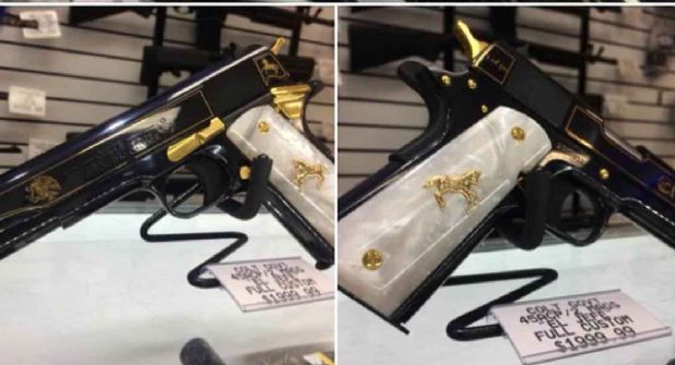 En Seattle Engraving Center se ofrece la pistola “El jefe de jefes” en 3 mil 999 dólares, en cerca de 83 mil pesos, que la tienda considera “obra maestra” y cuenta con “diseño patrimonial mexicano”.