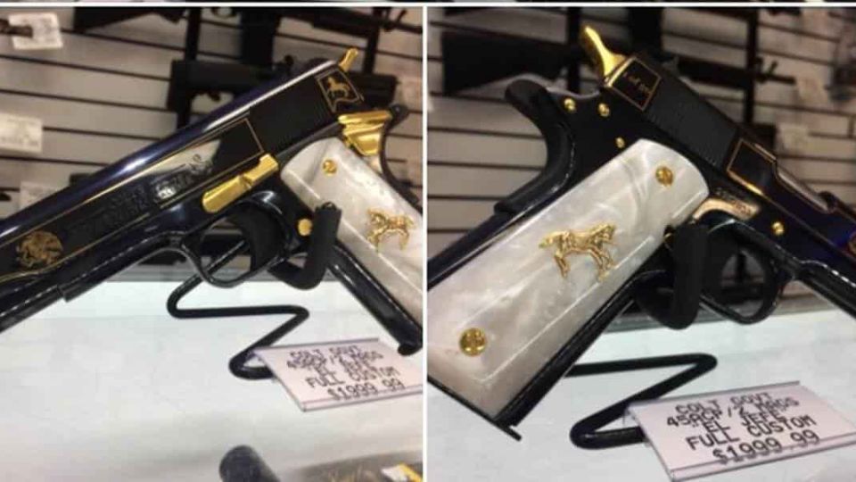 Algunas incluso son diseñadas con incrustaciones de oro. Por ejemplo, el modelo Colt “1911 .38 Super Emiliano Zapata Centennial” tiene el nombre y rostro del héroe de la Revolución Mexicana, además que la cacha es de color dorado con un caballo y muestra las iniciales “EZ”.