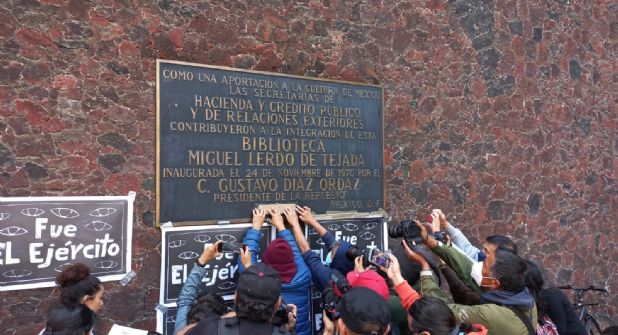 "Biblioteca Miguel Lerdo de Tejada, inaugurada el 24 de noviembre de 1970 por Gustavo Díaz Ordaz, presidente de la República… asesino".