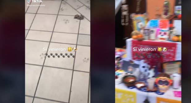 Este fue el caso de la usuaria de TikTok con nombre: @aurora.torresd pues al inicio del video mostró como en su piso existían huellitas de lo que parecían ser sus queridas mascotas que ya no se encuentran con ella en ese mundo, estas huellas conducían a la ofrenda de su familia donde ella colocó las imágenes de sus perritos y sus familiares con velas.