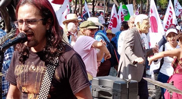 Incluso, uno de ellos se puso una mascara de latex del mandatario y también bailó lo q causo sorpresa entre los asistentes. Detrás de ellos, los asistente contingentes continuaron su camino al Zócalo.