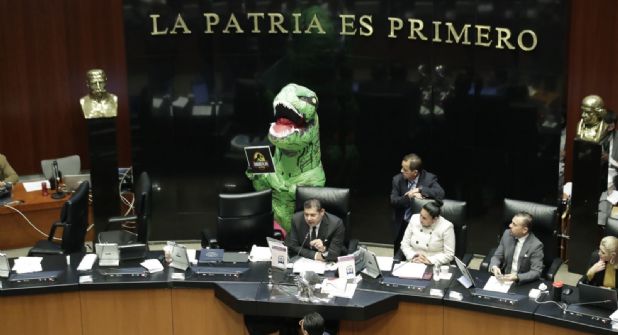 Para ello, los senadores tuvieron una sesión maratónica –de 23 horas–, en la que no faltaron los señalamientos entre la oposición y Morena, los vaticinios sobre la salida de un líder morenista y hasta una botarga de dinosaurio.