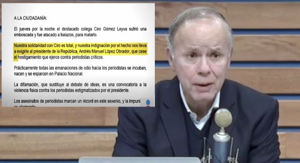 Miembros del gremio periodístico en México firmaron una carta dirigida al presidente Andrés Manuel López Obrador en la que exigen el cese del "hostigamiento que ejerce contra periodistas críticos", tras el atentado que sufrió Ciro Gómez Leyva y los comentarios del mandatario federal sobre el caso.