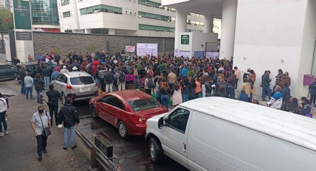 Los empleados tomaron de manera pacífica las instalaciones de Ejército Nacional 223, colonia Anáhuac, alcaldía Miguel Hidalgo, por lo que nadie ingresó a las oficinas y ahora se encuentran colocando un templete para señalar sus exigencias.