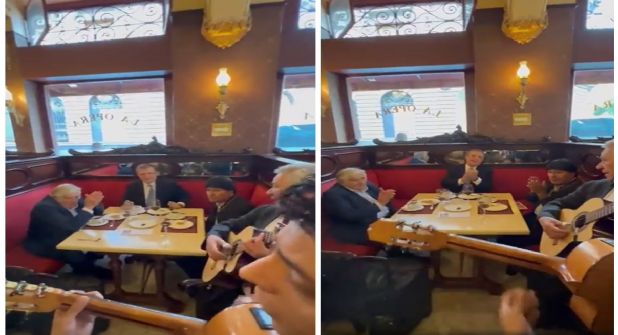 En el video publicado en Twitter, se le ve a Marcelo Ebrard con Evo Morales y José Mujica comiendo y cantando "México lindo y querido" acompañados de unos mariachis.