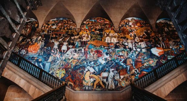Esta serie pintada en fresco (una técnica utilizada por el muralismo) se extiende a lo largo de 276 metros cuadrados y en ella se encuentra representada la historia de México.