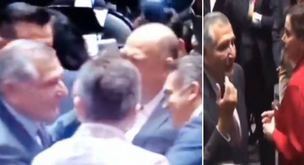 Minutos después López saludó a los legisladores panistas entre los que estaba la senadora Lilly Téllez, ex legisladora de Morena y actual miembro de la bancada azul. El encuentro pasó primero por un saludo de mano y un beso forzado del funcionario federal.
