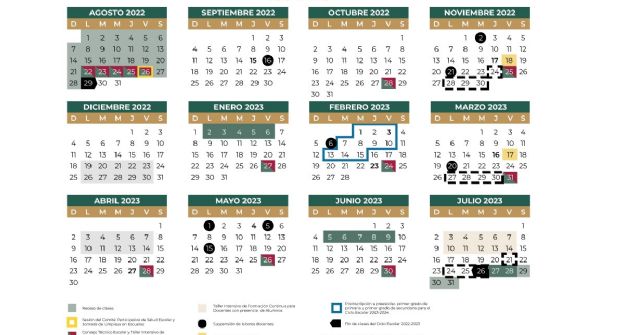 De acuerdo con el calendario de la SEP aceptado y aprobado, así como publicado en el Diario Oficial de la Federación (DOF), señala que se tienen dos calendarios. Uno de estos calendarios corresponde a las y los trabajadores de la educación que contará con 195 días laborales y uno especificado para el estudiantado con 190 días de labores escolares.