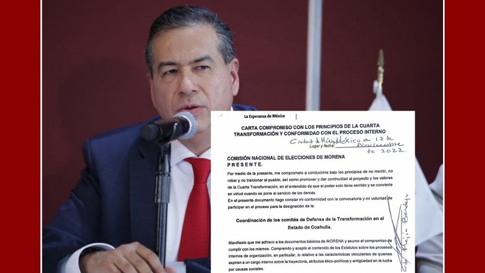 El pasado 17 de noviembre Mejía Berdeja se comprometió a través de una carta donde estampó su firma a reconocer los resultados de la encuesta interna de Morena para designar al candidato a la gubernatura de Coahuila por ese partido, misma que no le favoreció.