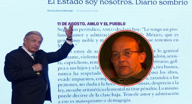 Este miércoles durante su conferencia mañanera, el presidente Andrés Manuel López Obrador expuso un texto realizado por el periodista Guillermo Sheridan en 2006 y que tituló “El Estado soy nosotros. Diario sombrío”, en el que critica al actual titular del Ejecutivo.