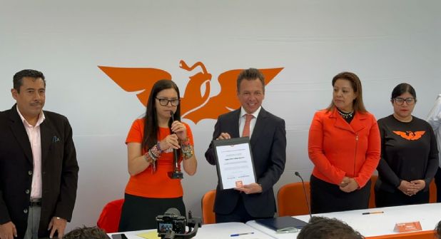 Se trata del primer de varios registros que el partido naranja recibirá en las próximas semanas en las instalaciones de su sede en la colonia Nápoles de la Ciudad de México, donde esta tarde arribaron figuras políticas destacadas de Movimiento Ciudadano, simpatizantes y una banda de mariachis para apoyar al aspirante a la gubernatura.