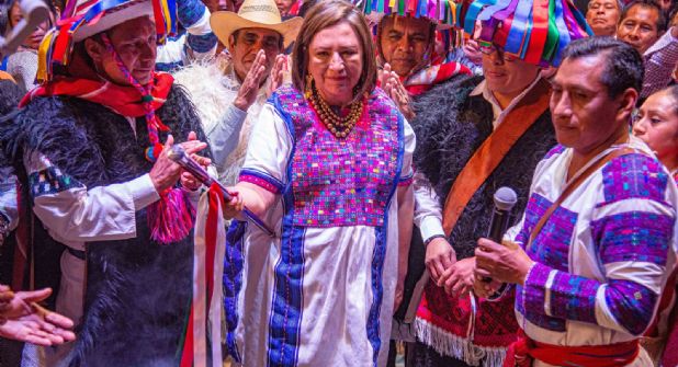 En San Cristóbal de las Casas, Chiapas, Xóchitl Gálvez del Frente Amplio por México, recibió el bastón de mando de representantes de comunidades indígenas de 18 municipios de la región. Durante el encuentro, Gálvez se comprometió a presentar nuevamente una iniciativa para el cumplimiento de los acuerdos de San Andrés Larráinzar, firmados en 1996 entre el gobierno federal y el EZLN.