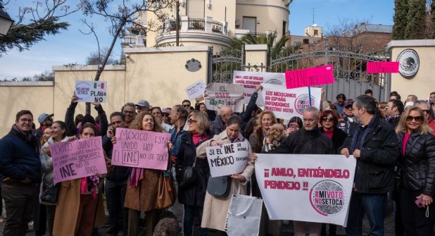En ciudades como Londres, París, Ginebra, Dinamarca, Madrid, Washington y Texas, los mexicanos que radican en estos países se reunieron frente a las embajadas con carteles y pancartas corean las consignas “el INE no se toca”.