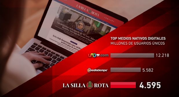 En competencia directa, La Silla Rota mantiene su liderazgo sobre SDPNoticias (4.0), Aristegui Noticias (2.2), LatinUs (1.0), SinEmbargo (593 mil) y Animal Político (527 mil).