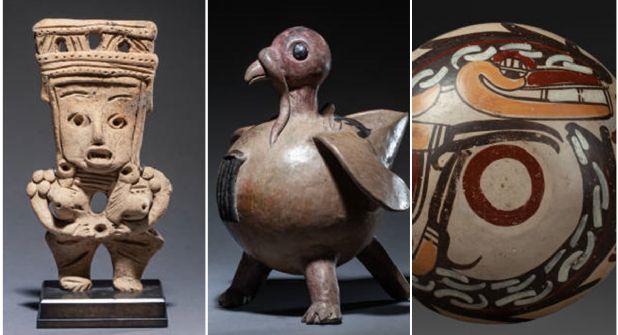 Entre ellos destacan figurillas antropomorfas, vasijas de cerámica y hachas votivas (sagradas) que pertenecen desde al periodo Preclásico Medio (1200-400 a.C.) hasta el Posclásico Mesoamericano (900-1300 d.C.) y corresponden a los estilos olmeca de la Costa del Golfo, tlatilca de la Cuenca de México, Nopiloa del centro de Veracruz, Chupícuaro de la región del Bajío o Tala-Tonalá del actual estado de Jalisco.