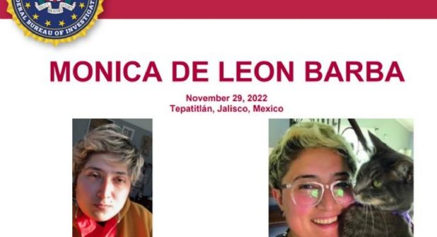 El Buró Federal de Investigaciones de Estados Unidos (FBI, por sus siglas en inglés) lanzó una nueva alerta para encontrar a una ciudadana estadounidense secuestrada el pasado 29 de noviembre de 2022 en Tepatitlán, Jalisco. La víctima responde al nombre de Mónica de León Barba.