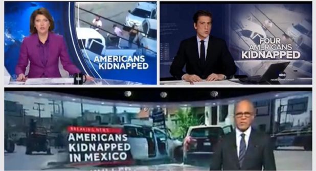Las grandes cadenas de televisión de Estados Unidos abrieron sus principales noticiarios nocturnos con el tema de los cuatro ciudadanos estadounidenses secuestrados en Matamoros, Tamaulipas.