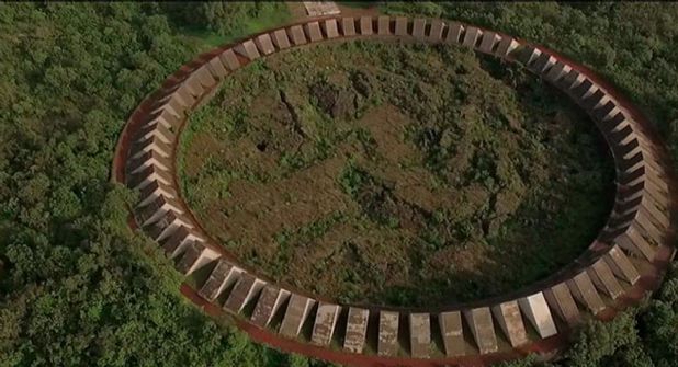 Eder académica del Instituto de Investigaciones Estéticas de la UNAM, indica que se trata de una obra de arte público –edificada en el Centro Cultural Universitario– constituida por un gran círculo de 120 metros de diámetro y conformada por 34 prismas triangulares La plataforma está construida a partir de piedra volcánica y sobre ella se levantan una serie de módulos de base rectangular de 9x 3 metros con una altura de 4 metros.