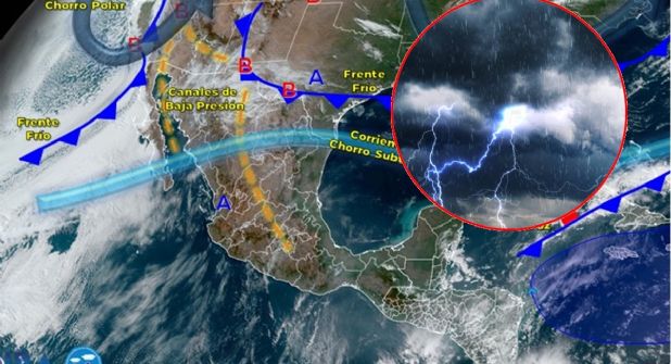 Por otro lado, un segundo frente frío se extenderá sobre la frontera norte de la República Mexicana y en asociación con una corriente en chorro subtropical propiciará rachas de viento con posibles tolvaneras, lluvias y chubascos en la Mesa del Norte.